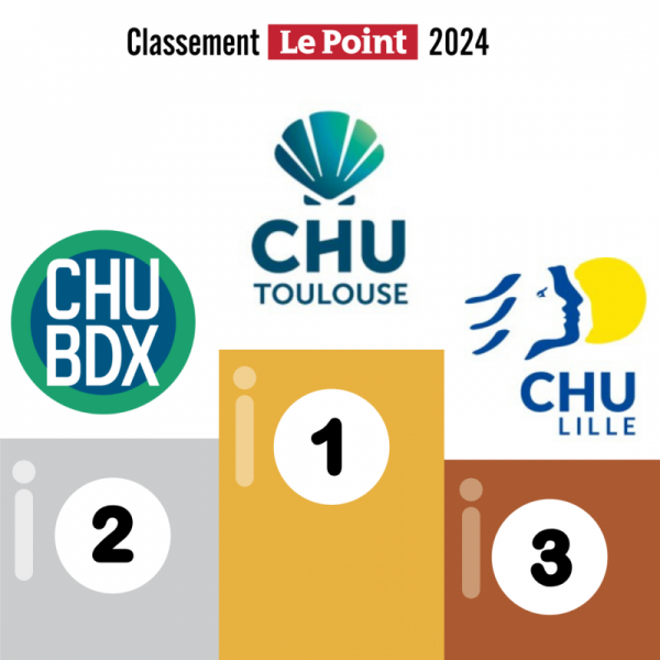 arrive 1er dans 8 spécialités. Le journal Le Point du 5 décembre 2024 place le CHU de Bordeaux en 2ème position parmi les 50 meilleurs hôpitaux publics de France.