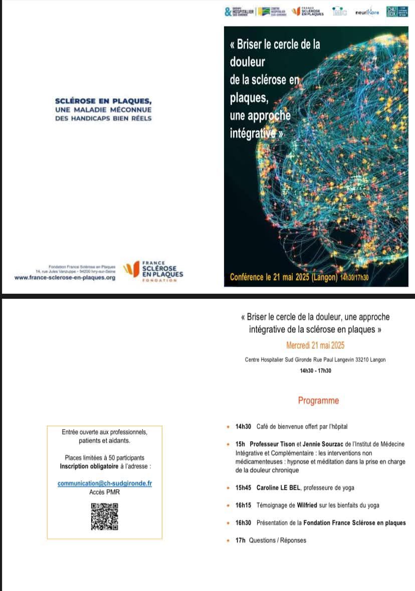 Conférence FranceSEP au CH Sud Gironde le 21 mai 2025 : "Briser le cercle de la douleur de la SEP, une approche intégrative"
