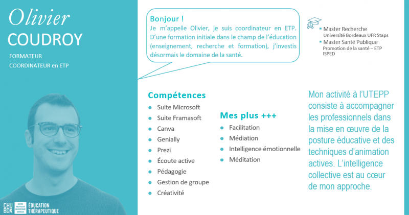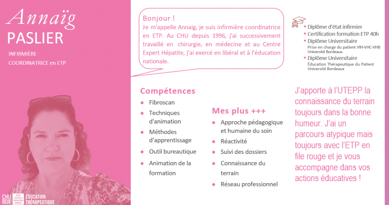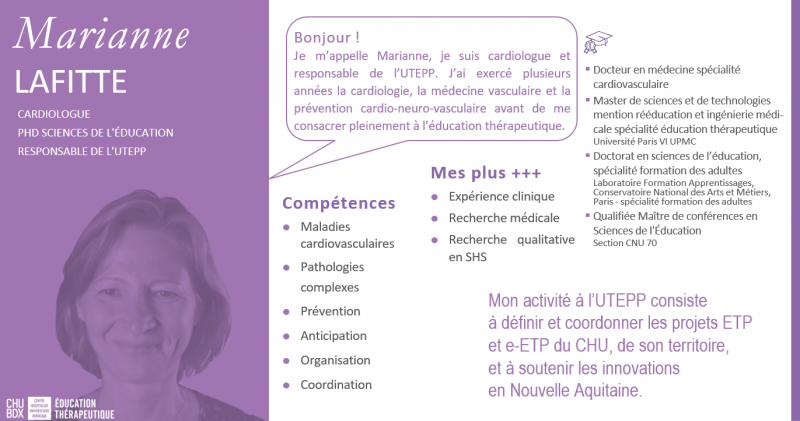 Créée en janvier 2014 au CHU de Bordeaux, l'UTEPP (Unité Transversale pour l'Éducation, la Prévention et le Parcours des malades chroniques) est une unité