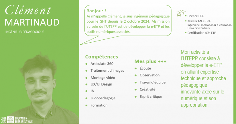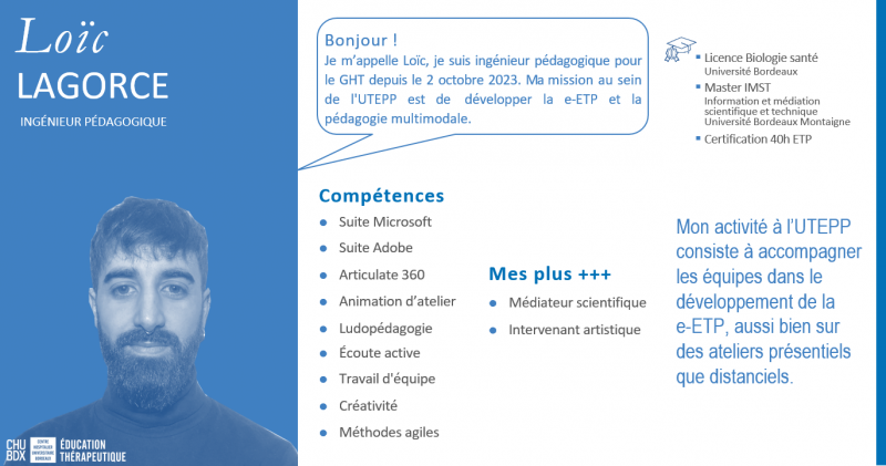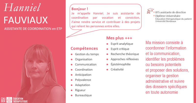 valoriser l'éducation thérapeutique du patient (ETP) au sein du CHU de Bordeaux et du Groupe Hospitalier de Territoire (GHT) Alliance de Gironde.